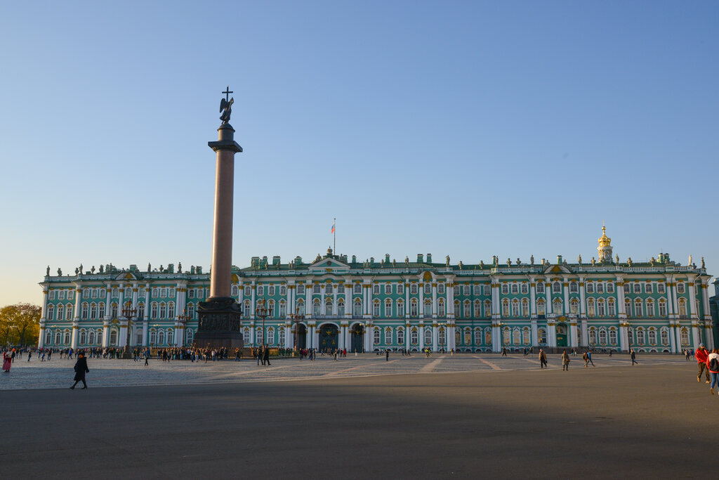 La Place du Palais avec le Palais d’Hiver et la Colonne d’Alexandre à Saint-Pétersbourg, Russie.